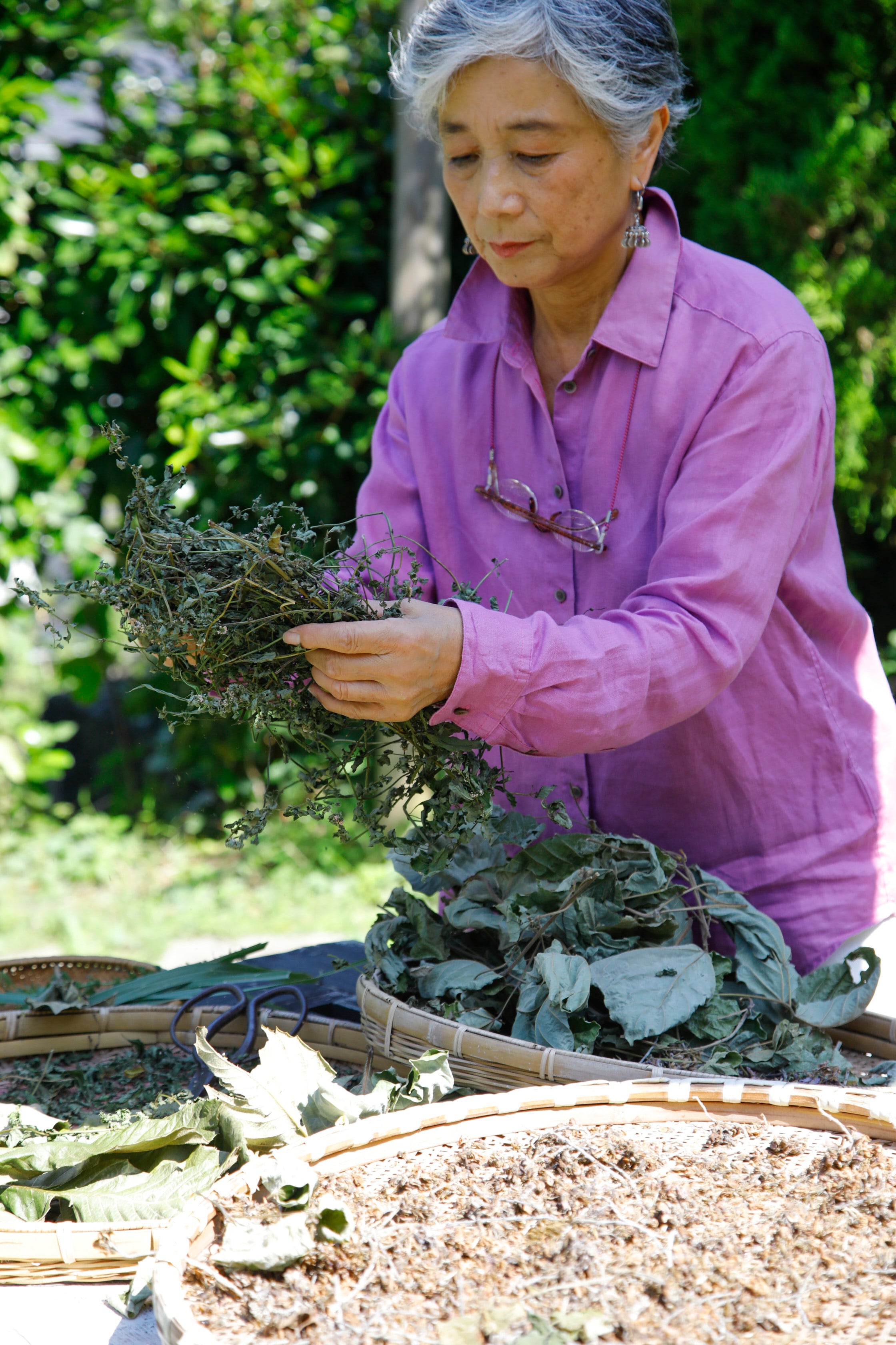 自家栽培の無農薬和ハーブ(よもぎ・どくだみ・スギナ・ビワの葉)をベースに、リコリスのやさしい甘みとミントのすっきりとした香りをブレンド。